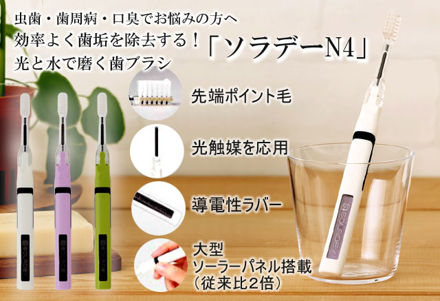 ソラデ―N4は、酸化チタンの光触媒効果でマイナスイオンが発生し、